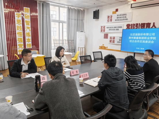 为精准对接新能源汽车产业对高素质技术技能人才的需求,进一步拓宽毕业生高质量就业渠道,深化产教融合、校企协同育人机制,2026年4月16日,汽车工程系与比亚迪股份有限公司成功举行校企合作座谈会。汽车工程系副主任田正洪、副书记夏云及相关负责人、骨干教师、教研组长,与比亚迪集团区域人力资源总监晁蓉、区域人力资源主管王鑫共同参会。双方围绕产业学院共建、人才共育体系构建、教学模式创新等核心议题展开了深入交流与探讨。