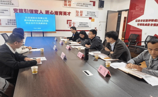 座谈会上,双方重点研讨了比亚迪“技能人才培养体系架构”。合作内容不仅局限于传统订单式培养,更着眼于长远育人生态的构建。针对 “1+1+N”课程框架创新、高水平“双师型”教师队伍联合培养、“五金”产教融合模式(金专业、金课程、金师资、金基地、金教材)等关键环节,双方明确了合作方向与实施路径。此次合作旨在打通从学校培养到入职发展的全周期成长通道,确保学生不仅“学得会、用得上”,更能“留得住、发展好”,为比亚迪及区域新能源汽车产业持续输送具备复合能力的卓越技术人才。
